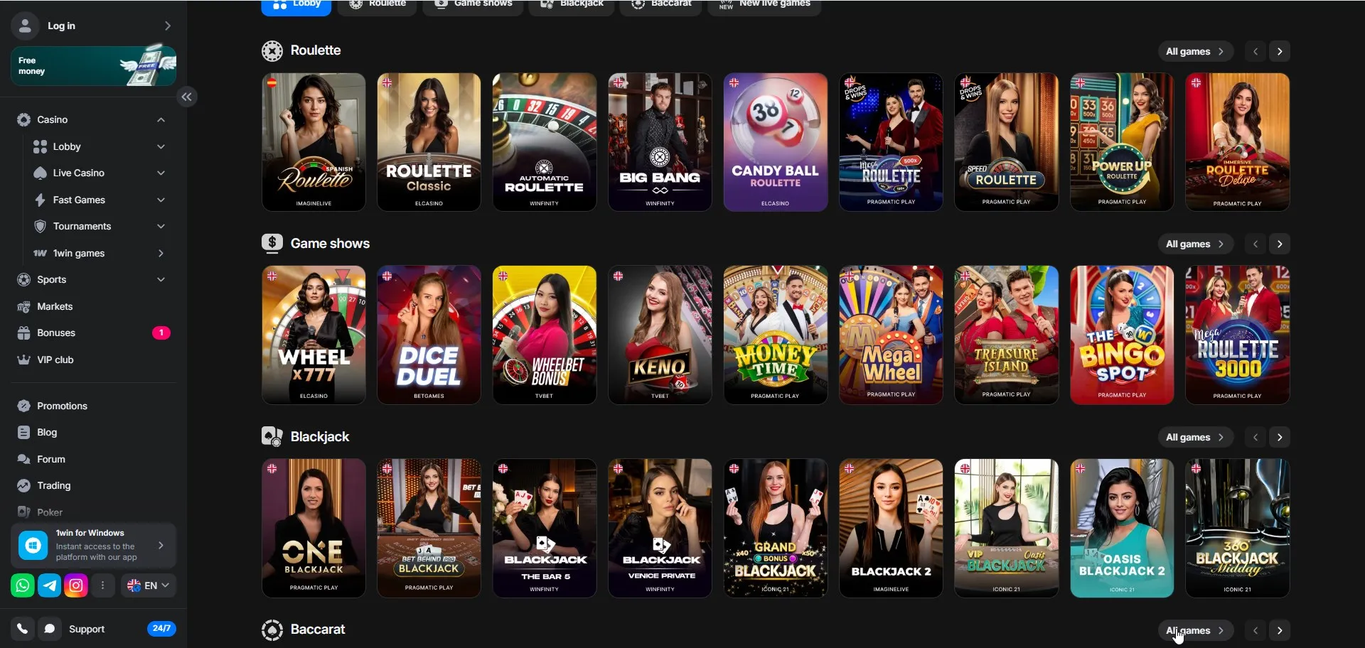 - Ruleta: variantes Auto, Speed y mesas con presentador. Física de rueda consistente; modos “racetrack” y apuestas favoritas. Multiplicadores en ciertas versiones incrementan la varianza.
